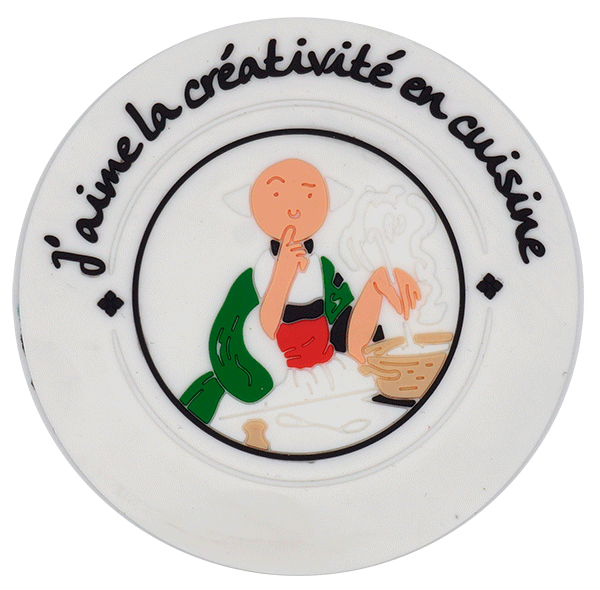 PVC軟膠杯墊,采用環(huán)保進(jìn)口PVC粉和油,顏色調(diào)色,開模具.工藝為點(diǎn)膠(微量射出),把不同顏色材料點(diǎn)在模具里面,再經(jīng)過機(jī)器烤溫成型制作而成。