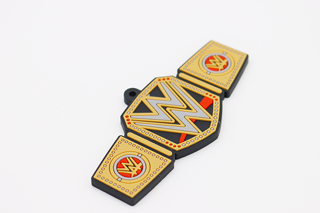 這是一款獨特設計定制化PVC鑰匙扣,鑰匙扣是按美國的綜藝節(jié)目wwe的金腰牌來制成,可以看出從不一樣的PVC鑰匙扣掛件。